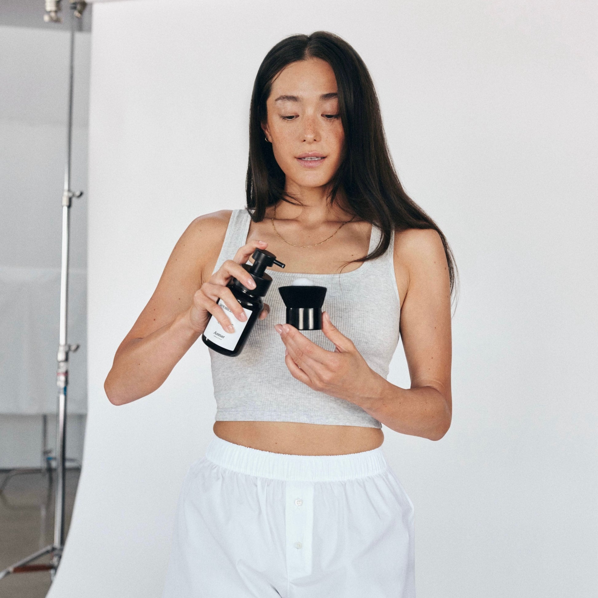 Appliquez une pression de mousse sur vos mains et étalez-la uniformément par zones.